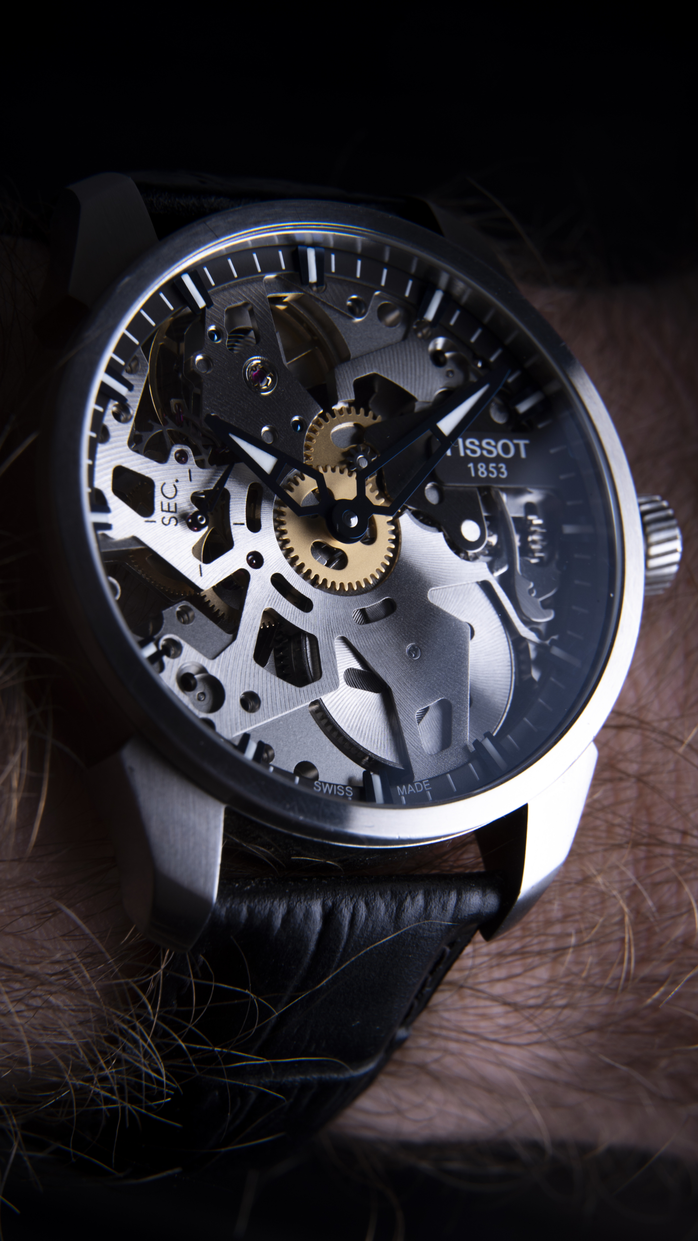 Montre Tissot T-Complication Squelette 43mm, Tissot conjugue son esprit d'innovation à un profond désir de faire vivre les traditions horlogères.
